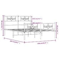 Metal Bed Frame without Mattress with Footboard Black 150x200 cm