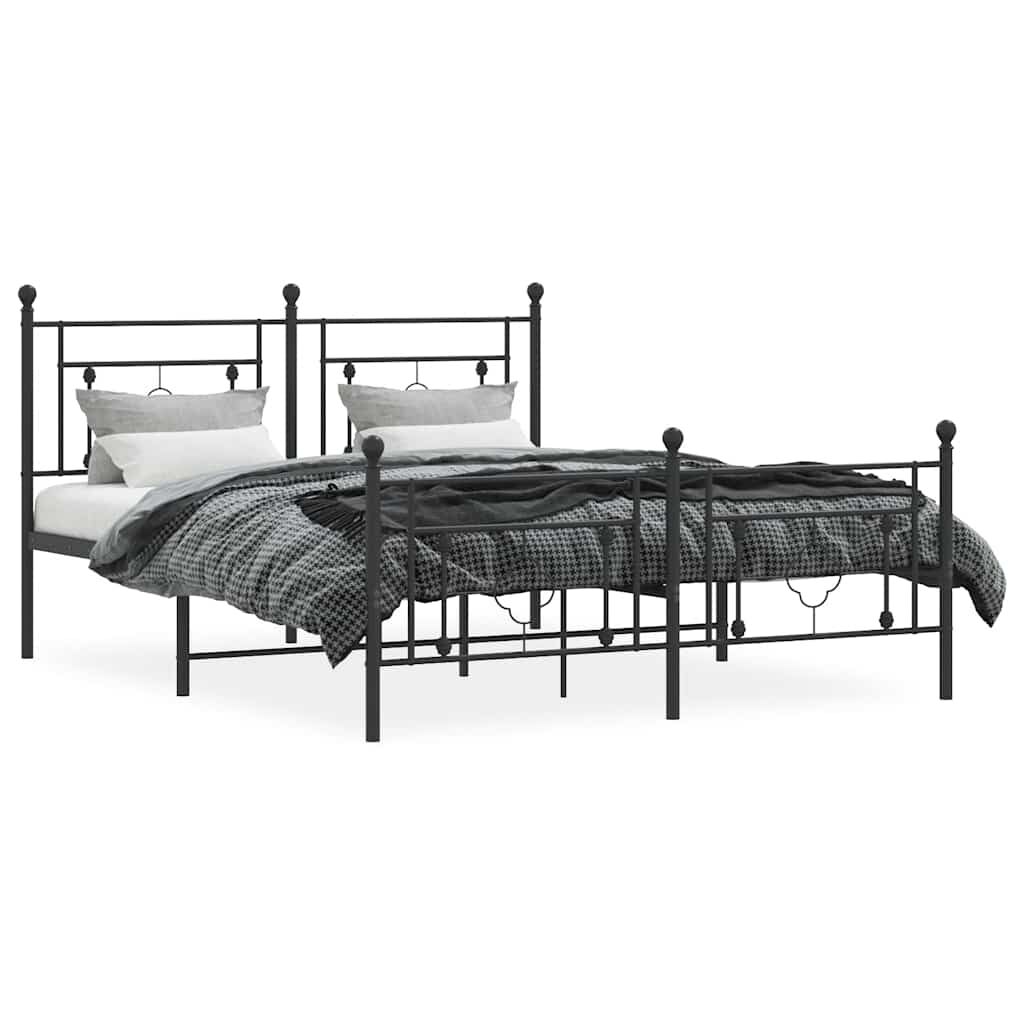 Metal Bed Frame without Mattress with Footboard Black 150x200 cm