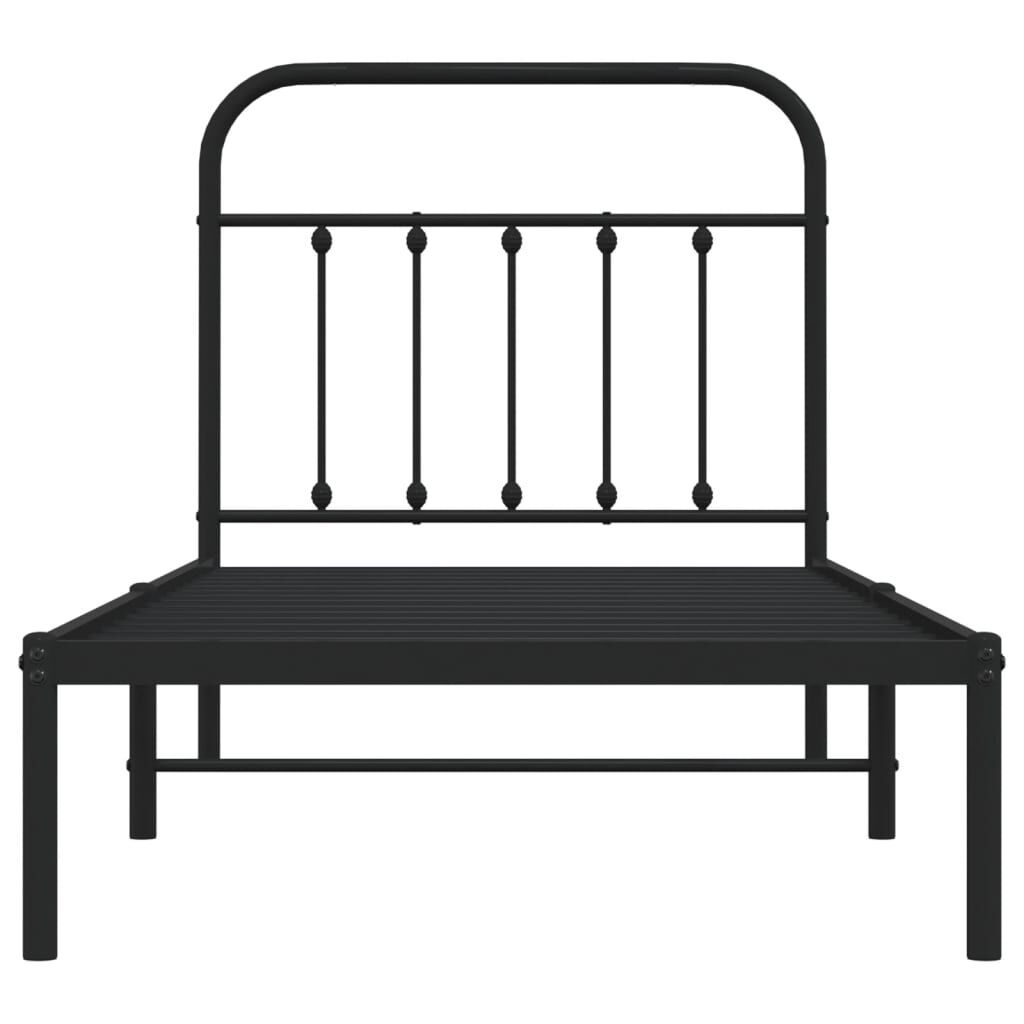 Metal Bed Frame without Mattress with Headboard Black 90x190 cm