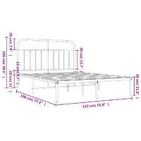 Metal Bed Frame without Mattress with Headboard Black 135x190 cm