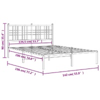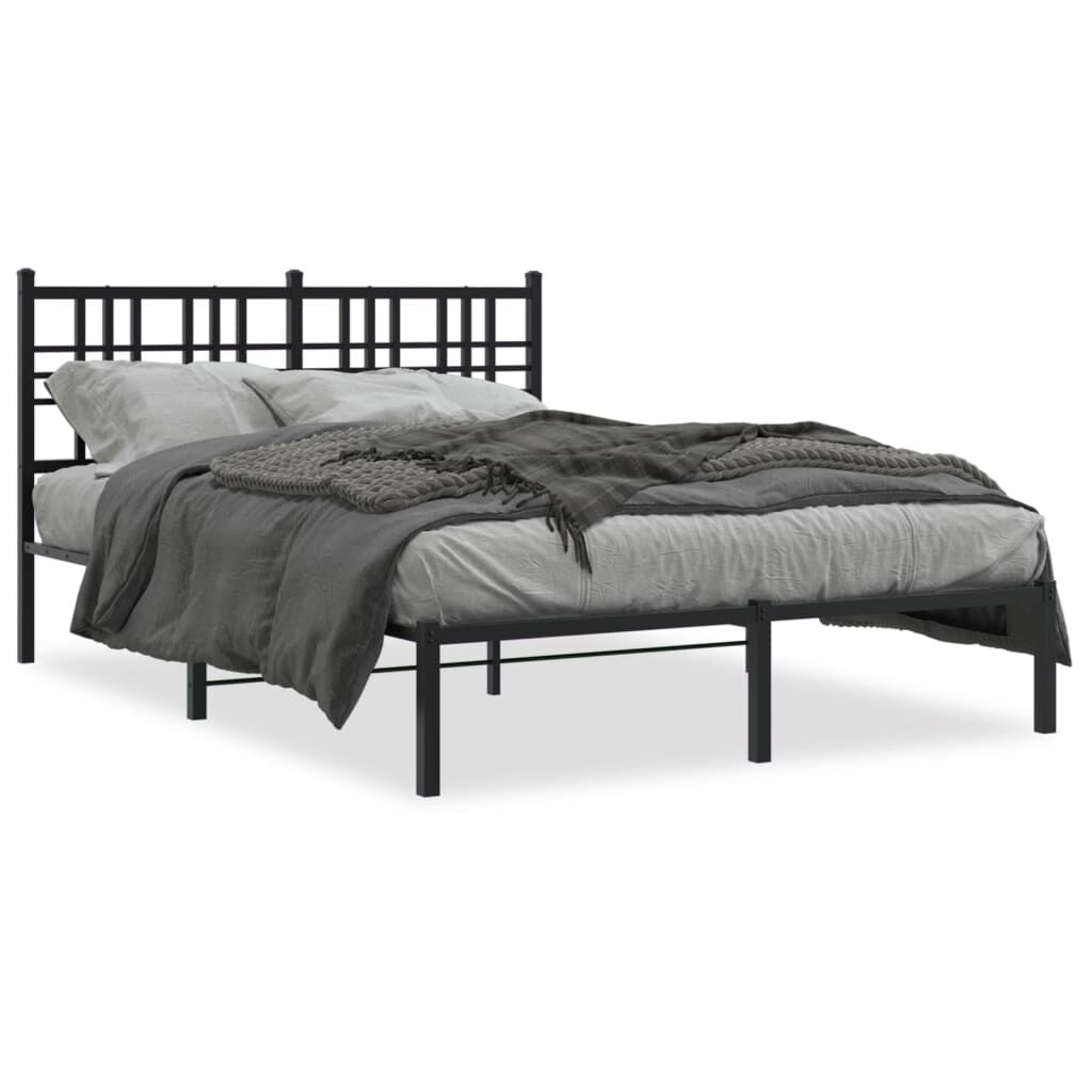 Metal Bed Frame without Mattress with Headboard Black 135x190 cm