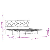 Metal Bed Frame without Mattress with Headboard White 183x203 cm King