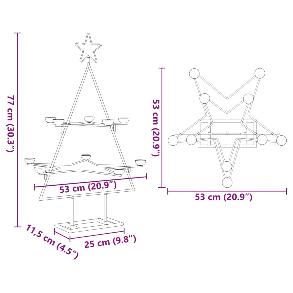 This metal Christmas tree is ideal for anyone who loves DIY decoration and is looking for Christmas trees with a modern look. DIY decoration: You have the freedom to unleash your creativity on the metal Xmas tree, where you can combine it with lightweight LED lights, fairy lights, pine branches, or other Christmas decorations to craft a one-of-a-kind, attention-grabbing decoration for your home.Sturdy construction: The Christmas decoration stand has a steel frame and is supported by a solid base for stability and sturdiness.Tealight holders: Each tier has 5 tealight bowls to hold the candles. When lit, the candles create a warm, ambient glow that enhances the festive atmosphere.Space-saving design: After use, you can disassemble the metal Christmas tree stand into multiple parts, and conveniently store all of them in a space-saving manner. Good to know:The delivery includes a tree frame only; candles are not included.
