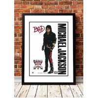 Iconic. Unstoppable. Pure pop royalty.... This framed digitally restored Australian Tour Poster from Michael Jacksons legendary Bad Tour in 1987 captures the King of Pop at the height of his powers. With leather, attitude, and moonwalk-level magic, this piece is a time capsule from an era where every beat, every move, and every stage was unforgettable.