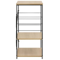 This 3-tier microwave cabinet will become a timeless addition to your home decor and every space can be used well. made of engineered wood, this kitchen shelf is easy to clean with a damp cloth. The steel structure makes it anti-rust and add to its sturdiness. This shelf has 3 tiers, which provides with you with ample space for storing things. This cabinet includes side accessory hooks for hanging pots, pans, utensils, oven mitts and more. You can also use it in living room or office for displaying your collectables, photo frames, etc. This cabinet is easy to assemble.