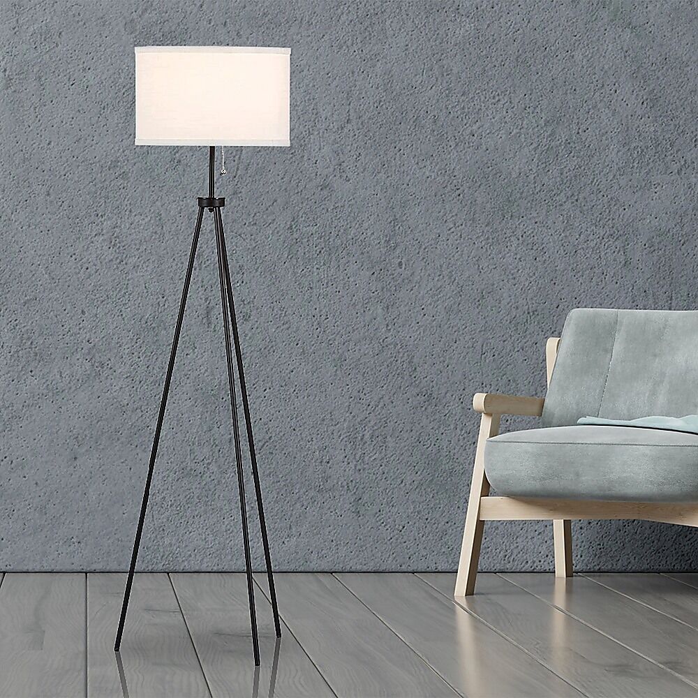 $101.51Love Mid-Century Modern, or do you tend to go for a contemporary minimalist vibe? This gorgeous tripod floor lamp by Palermo is the perfect accessory to make your room come alive with your favourite look. With its oh-so-atomic drum shade perched on three legs, this lamp channels the Sputnik look that was so popular in the late 50s and early 60s. Done in black metal with a textured ivory fabric shade, this lamp is a study in contrasts with its clean, contemporary aesthetic.