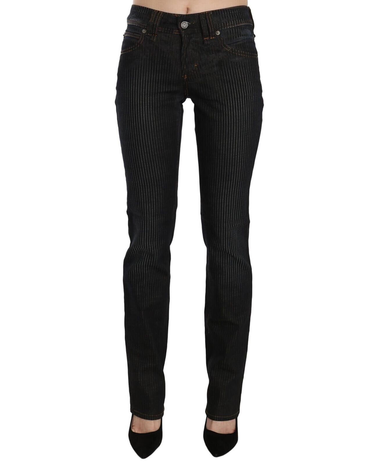 Mid Waist Slim Fit Corduroy Jeans with Logo Details