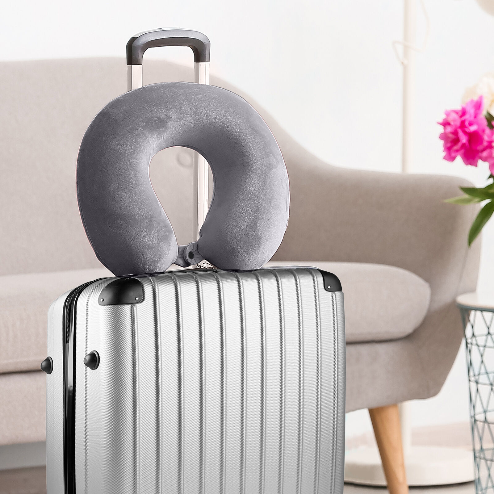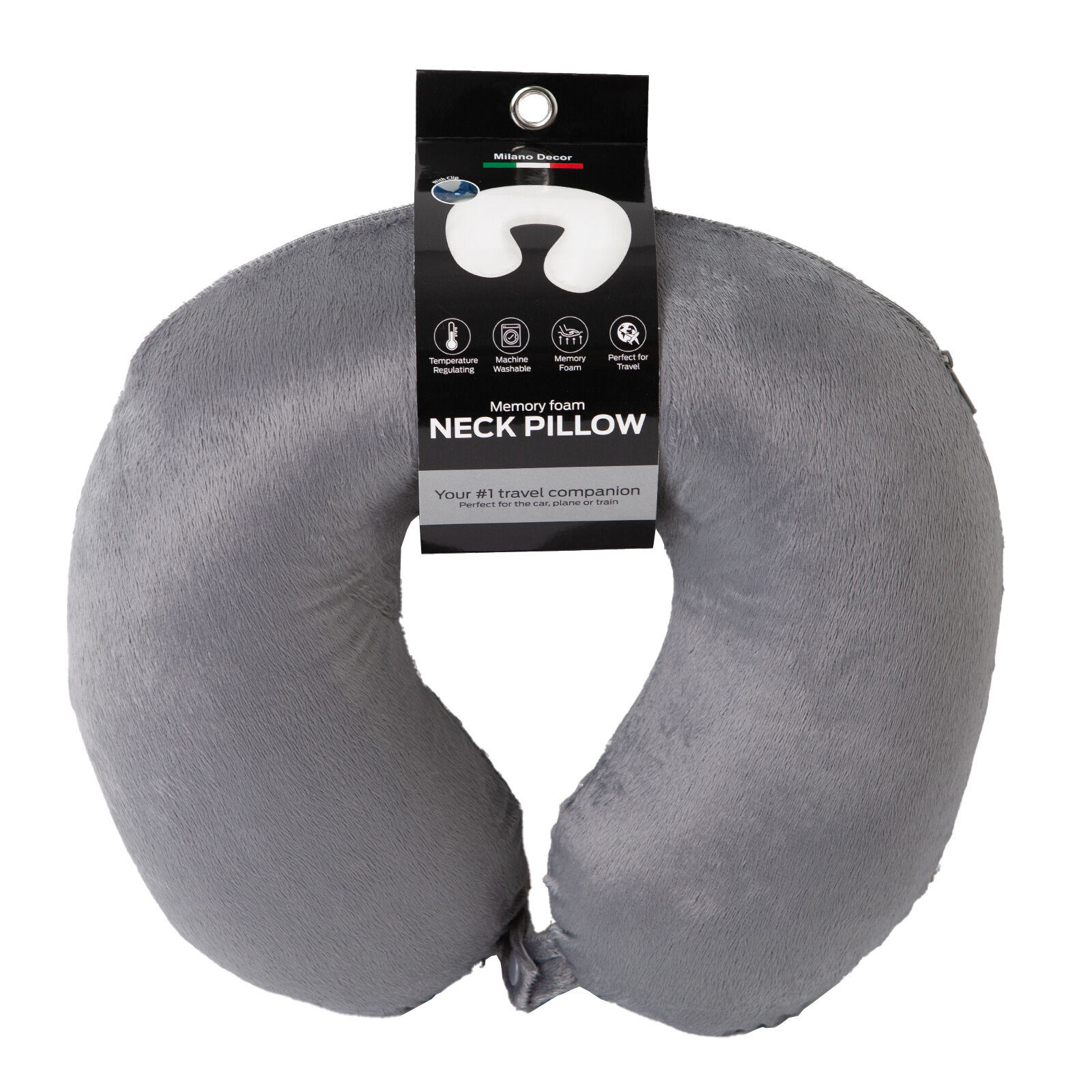 Milano Decor Memory Foam Travel Neck Pillow With Clip Cushion Support Soft Grey