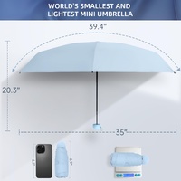 Mini Travel Umbrella – Compact Sun & Rain Protection for Women, Kids | UV-Blocking Pocket Umbrella with Case | Lightweight Foldable Umbrella(light blu
