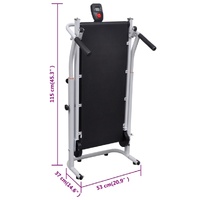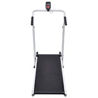 This manual treadmill will allow you to work out at home whenever you want. The treadmill has a running surface of 93 x 36 cm. By walking forward, you make the belt move. The faster you walk, the faster the belt runs. Its anti-slip running surface is comfortable and safe to walk on. Meanwhile, the included monitor tracks your speed, workout time, running distance and burned calories. Thanks to its folding design, the treadmill does not take up too much space when it is stored. What's more, the feet can be adjusted in height to adjust the angle of the running belt. Train and get fit at home with this compact and flexible folding treadmill! Please note that this is a small, non-electrical treadmill, which is most suitable for a walk or a light jog or run. For larger/taller users or more competitive runners it is advised to purchase bigger, electrical treadmills.