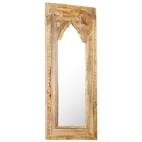 This gorgeous wooden mirror exudes a unique charm and will add a great addition to your home. The frame of the mirror is made of solid mango wood, a hardwood with dense grains. Solid mango wood not only has enough strength to bear the weight but also stands wear and tear of time. The wood has been meticulously hand-carved which adds more charm. The mirror can be placed in the bathroom, bedroom, or living room, serving as a cosmetic mirror or a decoration mirror. Important note: The color and grains of the wood may vary from piece to piece, making each piece unique and slightly different from the next. The delivery is random, ensuring the exclusivity and individuality of your product.