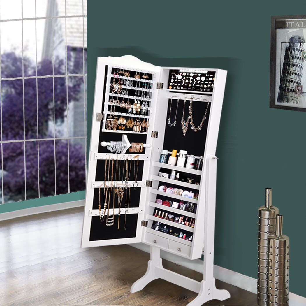 Dress your style, store your luxury with our ergonomically built Jewellery Cabinet. Crafted with delicacy of a design, so fine and subtle it will indulge your space with elegance it deserves. An artistic touch you will fall in love with. Feel the premium vibe it expresses, catchy look it indulges, fluent class it portrays. Phenomenally structured to hold all your precious valuables safe and sound, great way to stay organized. Choose your ornament one that resonates with your attire, check yourself out in its crystal-clear glass, dive into the nitty gritty details to show off your inner perfectionist because when it comes to beautification even the most smallest thing matters.