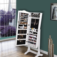 Made from high-quality MDF material. Embedded with exceptional toughness and durability for regular and long-term usage. It comes equipped with sturdy feet to keep the cabinet steady and stable all the time. Painted with black interior velvet lining for added strength, to elaborate its sassy inside. Ample space to store rings, necklace, earrings, and many more. It comes with spacious compartments impeccably aligned for greater convenience. Very easy to assemble with simple instructions.