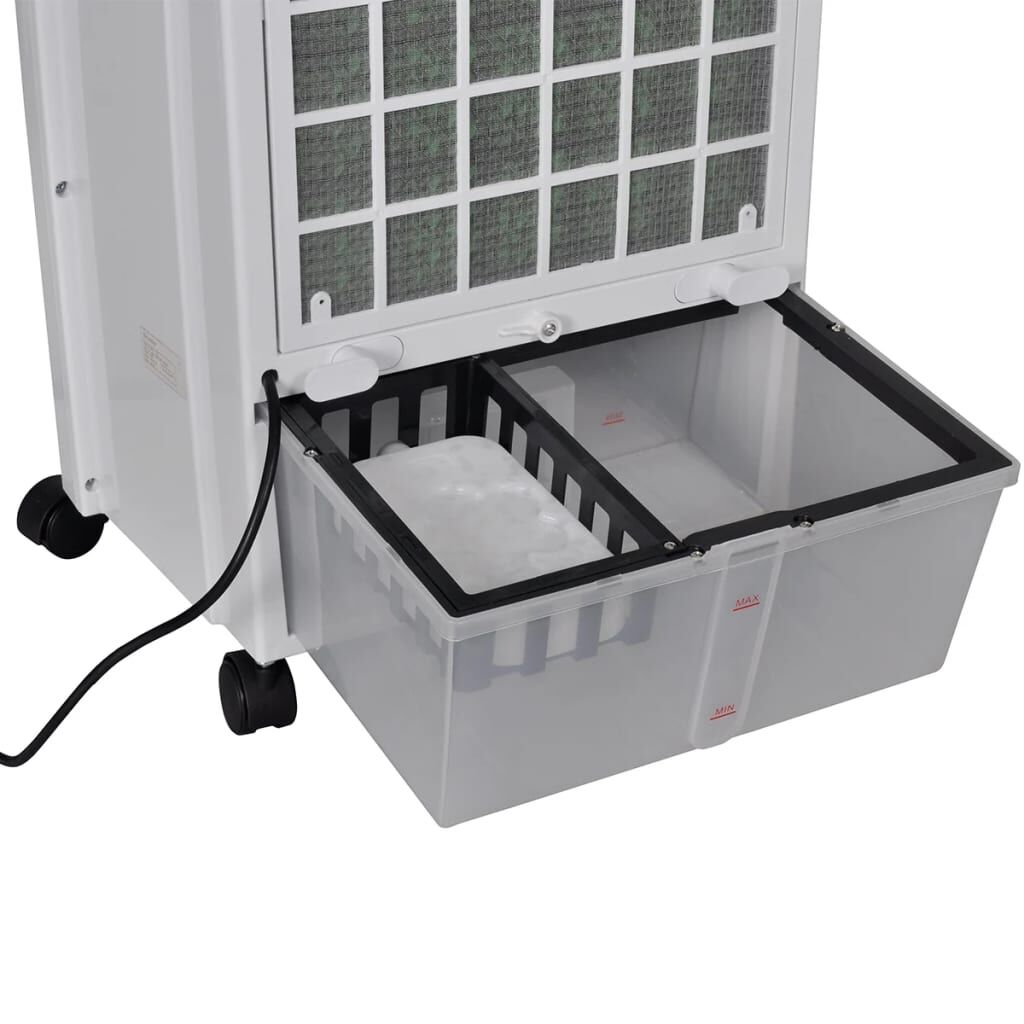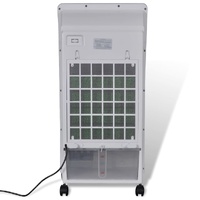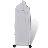 This mobile air cooler is an efficient portable fan that can inexpensively lower the air temperature and improve the indoor air quality of medium-sized rooms. This mobile air cooler combines ventilating and air cooling functions and delivers a stream of cool air to the room. The cooling effect is achieved by the evaporation of water or ice from the 8-litre water tank. It differs from conventional fans as it is designed to humidify and purify the air in order to improve the indoor environment.