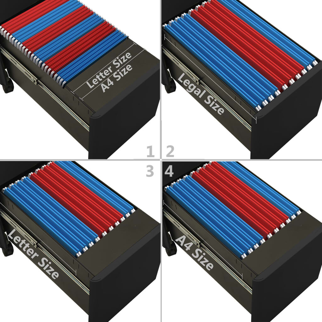 This mobile file cabinet, with a modern design, is ideal for file storage. This office cabinet is made of steel, making it durable as well as easy to clean. With 3 drawers and 1 lock, this file cabinet allows you to neatly sort your files into different categories and keep files safe. Each drawer is equipped with 1 removable hanging bar, which can be freely combined to store letter size, legal size and A4 hanging file folder. The mobile caninet has a pencil tray, which can make your desktop more tidy. Drawers with 3 sections ballbearing runners ensure smooth opening and closing, even under increased load, these drawers can be fully extended. Additionally, the left and right corners of the cabinet are round. The file cabinet fits well under a desk and will suit any office decor thanks to its iconic design.