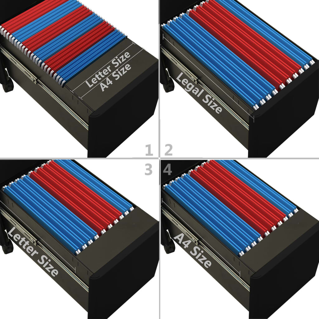 This mobile file cabinet, with a modern design, is ideal for file storage. This office cabinet is made of steel, making it durable as well as easy to clean. With 3 drawers and 1 lock, this file cabinet allows you to neatly sort your files into different categories and keep files safe. Each drawer is equipped with 1 removable hanging bar, which can be freely combined to store letter size, legal size and A4 hanging file folder. The mobile caninet has a pencil tray, which can make your desktop more tidy. Drawers with 3 sections ballbearing runners ensure smooth opening and closing, even under increased load, these drawers can be fully extended. Additionally, the left and right corners of the cabinet are round. The file cabinet fits well under a desk and will suit any office decor thanks to its iconic design.