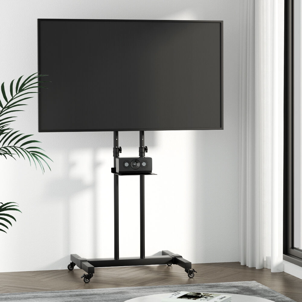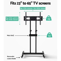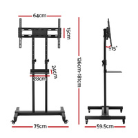 $132.53Entertainment is easy with our Artiss TV Floor Stand. With a seamless design that incorporates your TV screen and other multi-media equipment into one ensemble, the TV floor stand is simply exceptional. With a high-quality black powder-coated steel frame that has a weight capacity of 40kg, the TV floor stand can easily hold any TV screen between 23 inches and 65 inches. The stand comes with flexible mounting for various standard VESA measurements and is suitable for both curved and flat screens, so you don't have to worry about compatibility. The stand is set on rotating castor wheels with brakes so that you can move it to any room or location and keep it steady. It is also height adjustable between 126cm and 183cm so you will always have a comfortable line of sight. The tempered glass top shelf and integrated cable management system allow you to keep all your entertainment neatly in one place, while a safety bolt and sturdy base ensure total safety and a firm hold on your precious television screen. Enjoy mobile entertainment with the Artiss TV Floor Stand.
