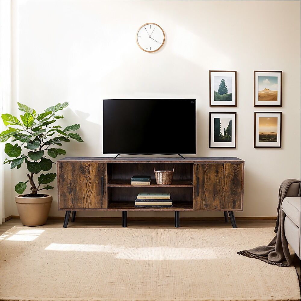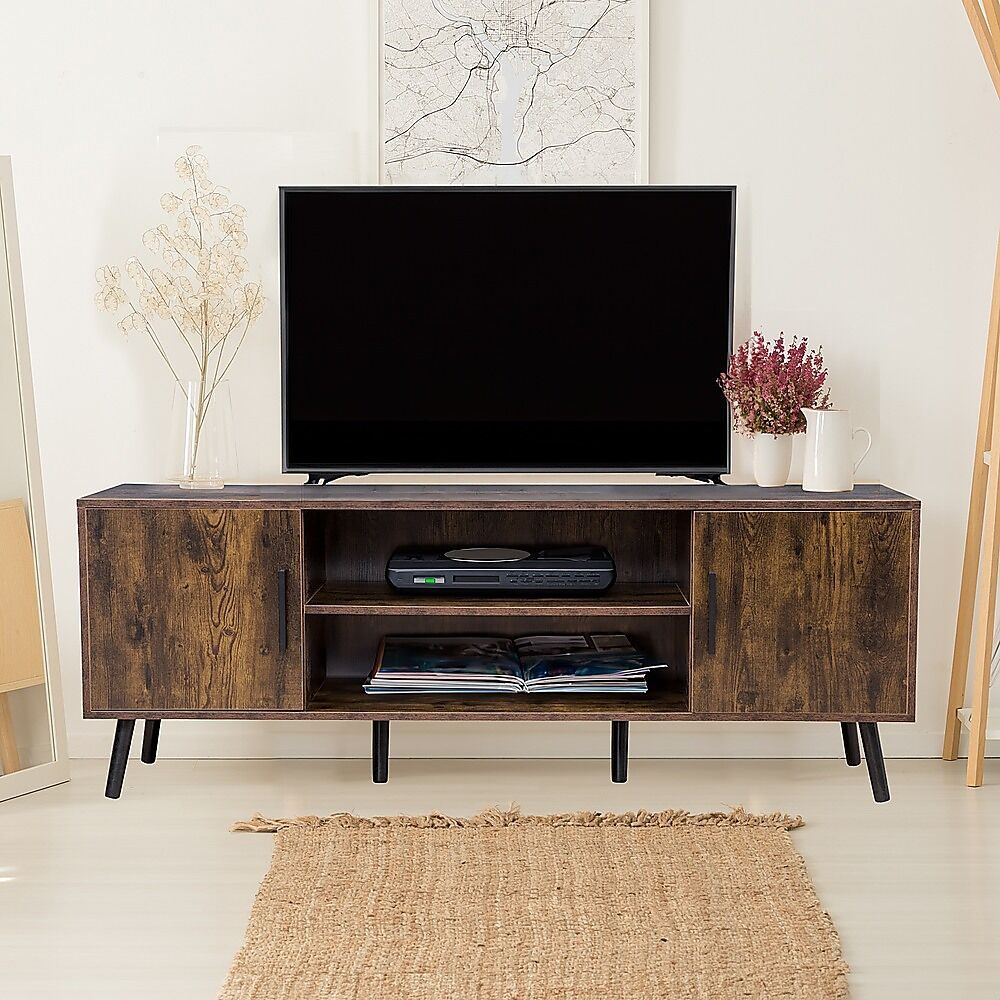 Crafted with attention to detail, this TV stand is not only functional but also aesthetically pleasing. It showcases a mid-century modern design style that effortlessly elevates the ambiance of your living room, bedroom, or home office while providing extra storage space.