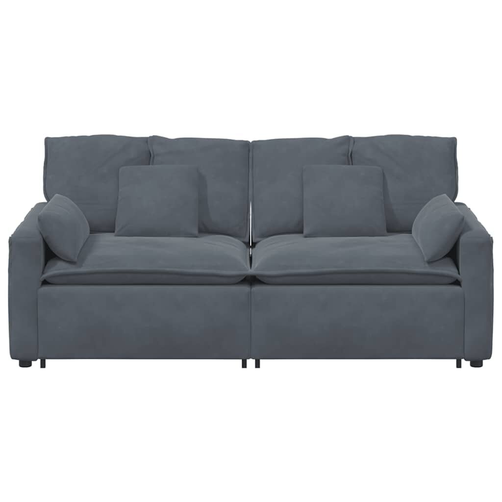 Elevate your living space with the modular sofa, combining elegant design with exceptional comfort. Mix and match to create the perfect seating arrangement for your home. Soft and comfortable material: Velvet fabric features a soft and smooth surface that delivers a delightful sensation against the skin, bringing you warmth and ultimate comfort.Stable and robust frame: With a strong metal frame and sturdy wooden armrests, the sofa guarantees exceptional stability and is built to endure everyday use.Extra comfort: Enhanced with supportive armrests and textilene seating, the sofa offers unmatched comfort for relaxation, featuring cushions that contour your body for ultimate lounging pleasure.Modular design: The sofa's modular construction allows for effortless reconfiguration to suit any room layout. This flexible assembly ensures a versatile seating solution perfectly fitting your space and lifestyle.Generous seating: Featuring two modular sections, the sofa provides ample seat space for comfortable lounging, making it ideal for family gatherings or entertaining friends. Whether used in a cosy living room or an open-plan space, its spacious design ensures everyone can relax together.