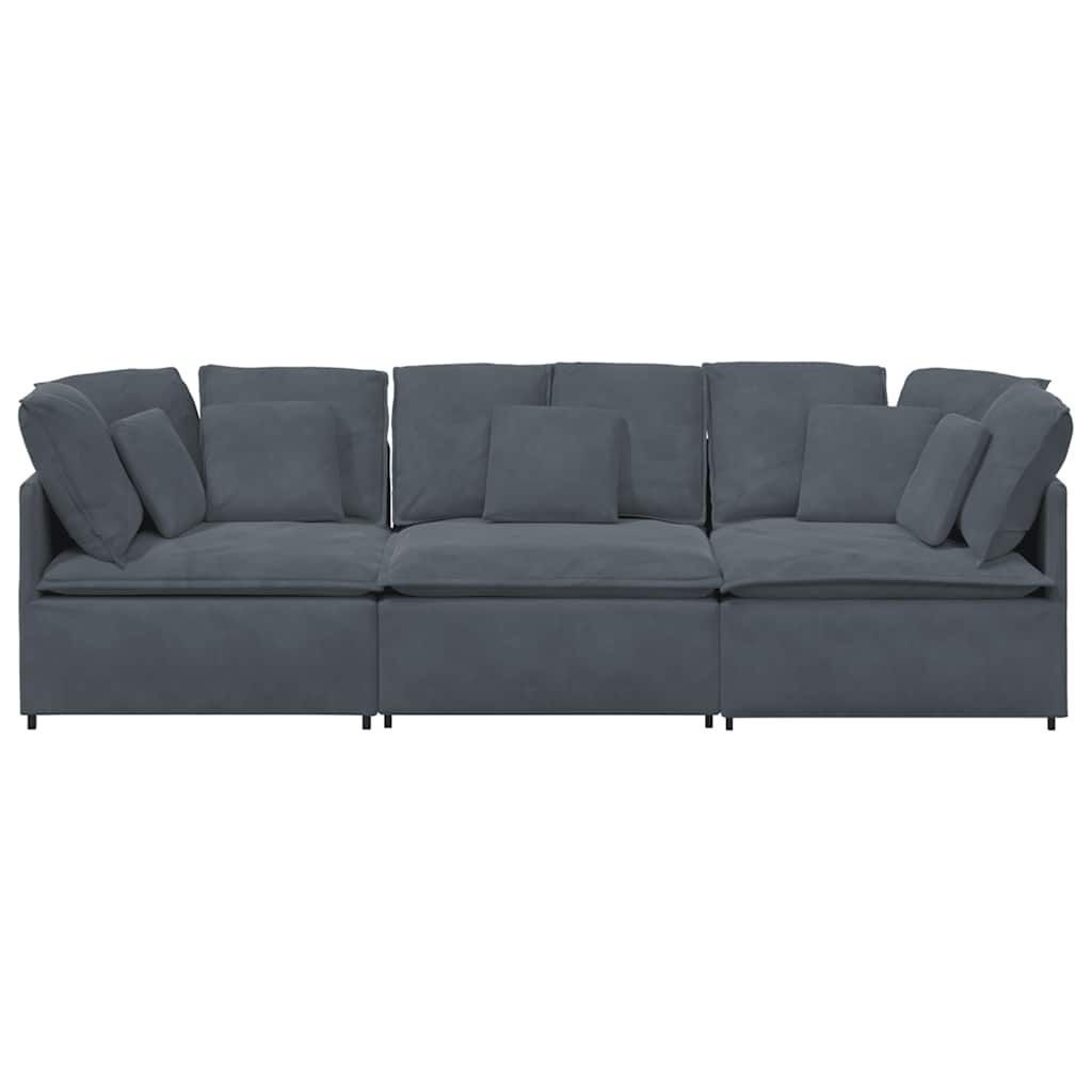 Elevate your living space with the modular sofa, combining elegant design with exceptional comfort. Mix and match to create the perfect seating arrangement for your home. Soft and durable seating: The velvet upholstery and foam filling provide softness and breathability, offering long-lasting comfort and durability, ensuring it withstands daily wear while retaining its elegant look.Stable and robust frame: With a strong metal frame and sturdy wooden armrests, the sofa guarantees exceptional stability and is built to endure everyday use.Extra comfort: Enhanced with supportive armrests and textilene seating, the sofa offers unmatched comfort for relaxation, featuring cushions that contour your body for ultimate lounging pleasure.Modular design: The sofa's modular construction allows for effortless reconfiguration to suit any room layout. This flexible assembly ensures a versatile seating solution perfectly fitting your space and lifestyle.Generous seating: Featuring three modular sections, the sofa provides ample seat space for comfortable lounging, making it ideal for family gatherings or entertaining friends. Whether used in a cosy living room or an open-plan space, its spacious design ensures everyone can relax together.