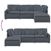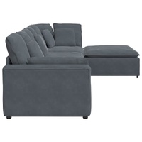 Elevate your living space with the modular sofa, combining elegant design with exceptional comfort. Mix and match to create the perfect seating arrangement for your home. Soft and durable seating: The velvet upholstery and foam filling provide softness and breathability, offering long-lasting comfort and durability, ensuring it withstands daily wear while retaining its elegant look.Stable and robust frame: With a strong metal frame and sturdy wooden armrests, the sofa guarantees exceptional stability and is built to endure everyday use.Extra comfort: Enhanced with supportive armrests and textilene seating, the sofa offers unmatched comfort for relaxation, featuring cushions that contour your body for ultimate lounging pleasure.Modular design: The sofa's modular construction allows for effortless reconfiguration to suit any room layout. You can position the footstool module on either the right or left side, adapting to your usage needs and personal preferences. This flexible assembly ensures a versatile seating solution perfectly fitting your space and lifestyle.Generous seating: Featuring four modular sections, the sofa provides ample seat space for comfortable lounging, making it ideal for family gatherings or entertaining friends. Whether used in a cosy living room or an open-plan space, its spacious design ensures everyone can relax together.