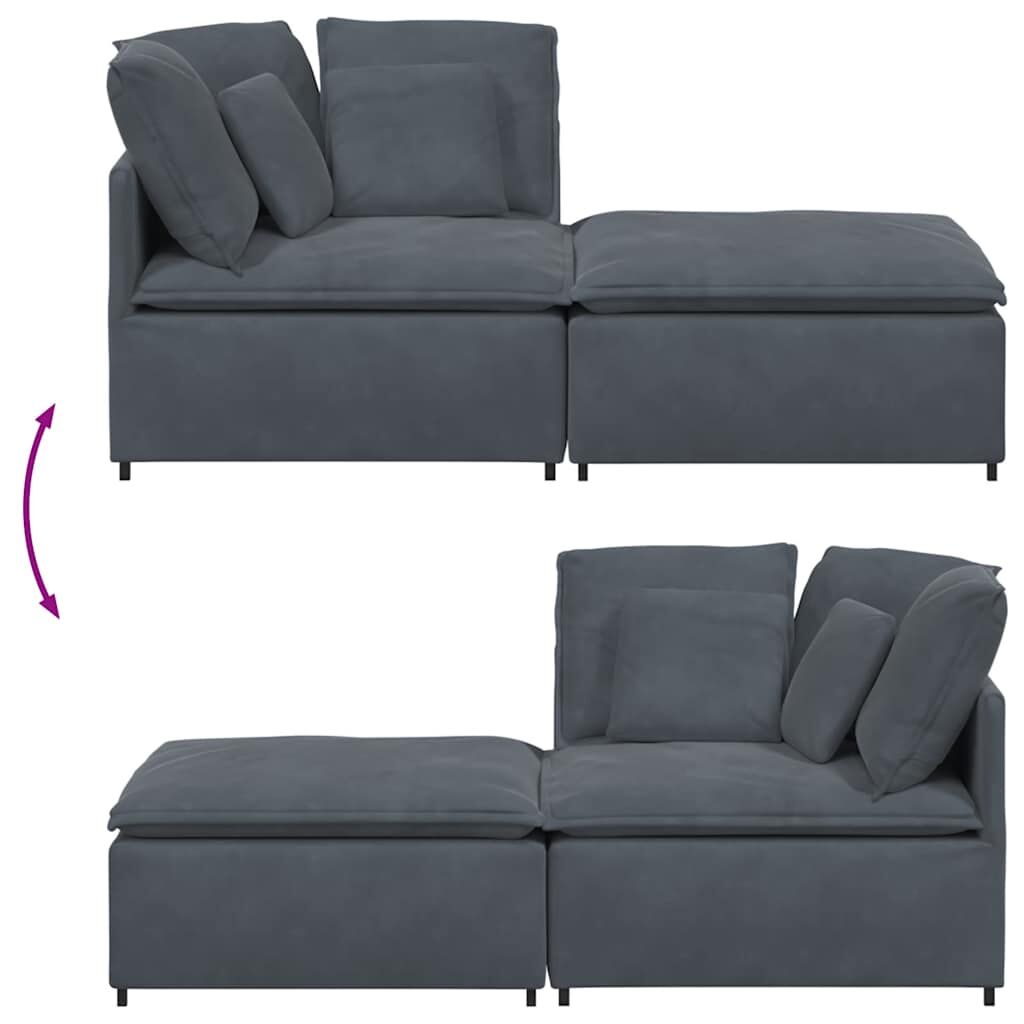 Elevate your living space with the modular sofa, combining elegant design with exceptional comfort. Mix and match to create the perfect seating arrangement for your home. Soft and durable seating: The velvet upholstery and foam filling provide softness and breathability, offering long-lasting comfort and durability, ensuring it withstands daily wear while retaining its elegant look.Stable and robust frame: With a strong and sturdy metal frame, the sofa guarantees exceptional stability and is built to endure everyday use.Extra comfort: Enhanced with textilene seating, the sofa offers unmatched comfort for relaxation, featuring cushions that contour to your body for ultimate lounging pleasure.Modular design: The sofa's modular construction allows for effortless reconfiguration to suit any room layout. You can position the footstool module on either the right or left side, adapting to your usage needs and personal preferences. This flexible assembly ensures a versatile seating solution perfectly fitting your space and lifestyle.Generous seating: Featuring two modular sections, the sofa provides ample seat space for comfortable lounging, making it ideal for family gatherings or entertaining friends. Whether used in a cosy living room or an open-plan space, its spacious design ensures everyone can relax together.