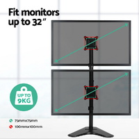 Extend your working display with an Artiss Adjustable Dual Monitor Arm. Easily support two computer monitors on a single arm. Tilt, rotate and swivel your monitors to find the perfect angle. Using the detachable VESA mounts, you can mount any monitor size between 17-32"". Other great features include a freestanding V-shaped base that does not need any drilling or clamping, cable loops for tidy cabling and an Allen key holder. Made from heavy-duty steel, the monitor arm is designed to stand up to long-lasting use without missing a beat. All the necessary mounting hardware and an assembly manual are included in the package for a hassle-free set-up. Double your productivity with an Artiss Adjustable Dual Monitor Arm today.