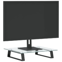 This practical monitor stand with a minimalist design will add a modern touch to your living space. Durable material: The computer stand is made of tempered glass and metal, making it exceedingly sturdy and stable.Ergonomic design: Raise your monitor up to eye level for a comfortable ergonomic viewing experience, relieving the strain on the neck, shoulder, and back.Additional storage: The storage space underneath this monitor riser can accommodate your keyboard, DVD player, gaming console, streaming device, receivers, media carriers, notebooks, pens, and similar items, which can better organise the desk to increase your efficiency.Rounded corner design: The smooth rounded corners allow you not to worry about being hurt by the screen stand during use.