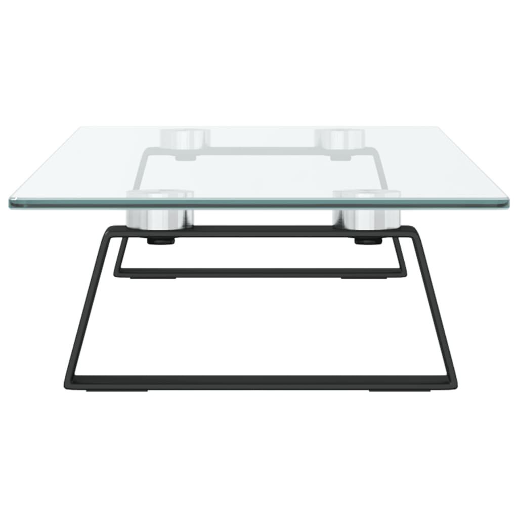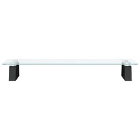 This practical monitor stand with a minimalist design will add a modern touch to your living space. Durable material: The computer stand is made of tempered glass and metal, making it exceedingly sturdy and stable.Ergonomic design: Raise your monitor up to eye level for a comfortable ergonomic viewing experience, relieving the strain on the neck, shoulder, and back.Additional storage: The storage space underneath this monitor riser can accommodate your keyboard, DVD player, gaming console, streaming device, receivers, media carriers, notebooks, pens, and similar items, which can better organise the desk to increase your efficiency.Rounded corner design: The smooth rounded corners allow you not to worry about being hurt by the screen stand during use.
