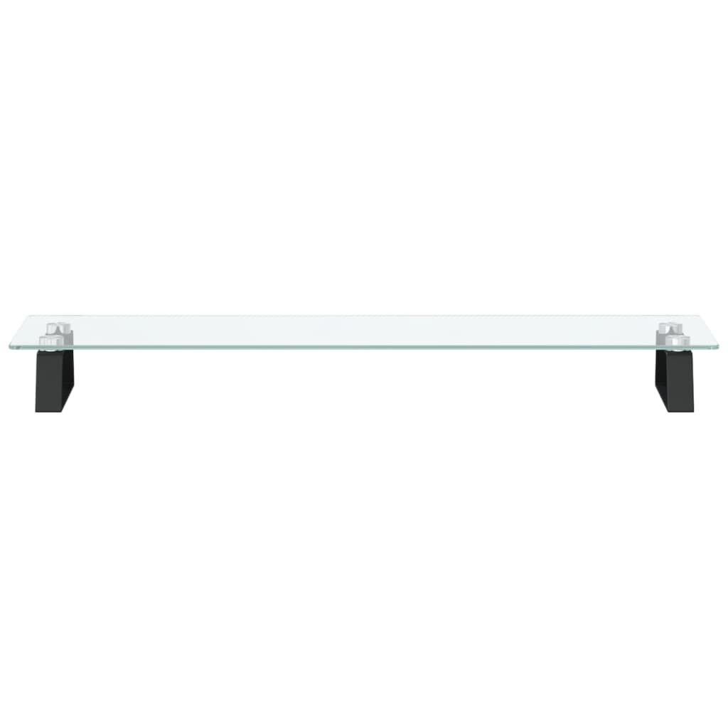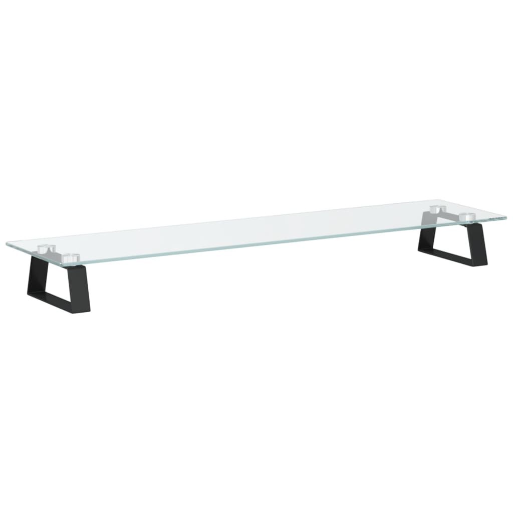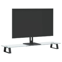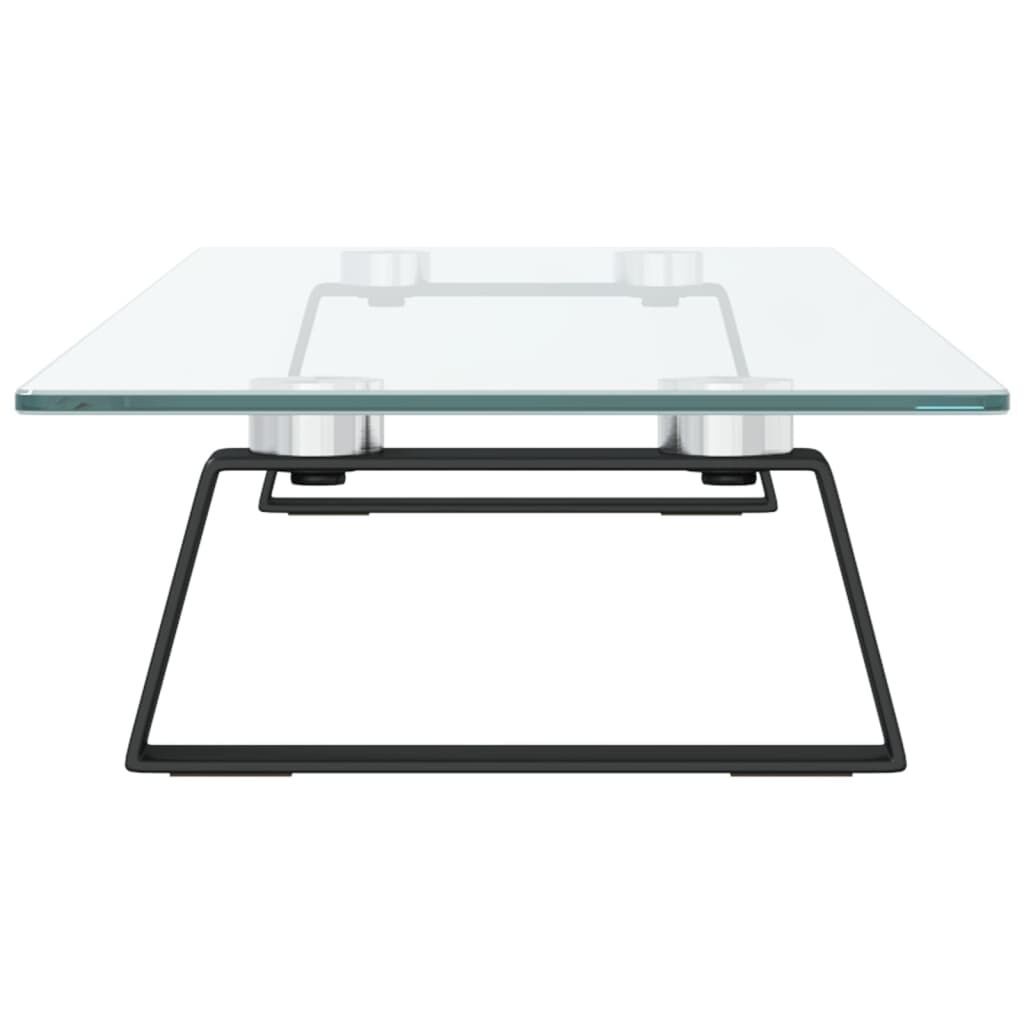 This practical monitor stand with a minimalist design will add a modern touch to your living space. Durable material: The computer stand is made of tempered glass and metal, making it exceedingly sturdy and stable.Ergonomic design: Raise your monitor up to eye level for a comfortable ergonomic viewing experience, relieving the strain on the neck, shoulder, and back.Additional storage: The storage space underneath this monitor riser can accommodate your keyboard, DVD player, gaming console, streaming device, receivers, media carriers, notebooks, pens, and similar items, which can better organise the desk to increase your efficiency.Rounded corner design: The smooth rounded corners allow you not to worry about being hurt by the screen stand during use.