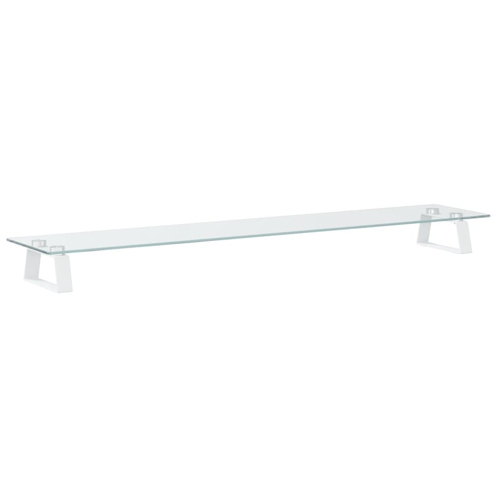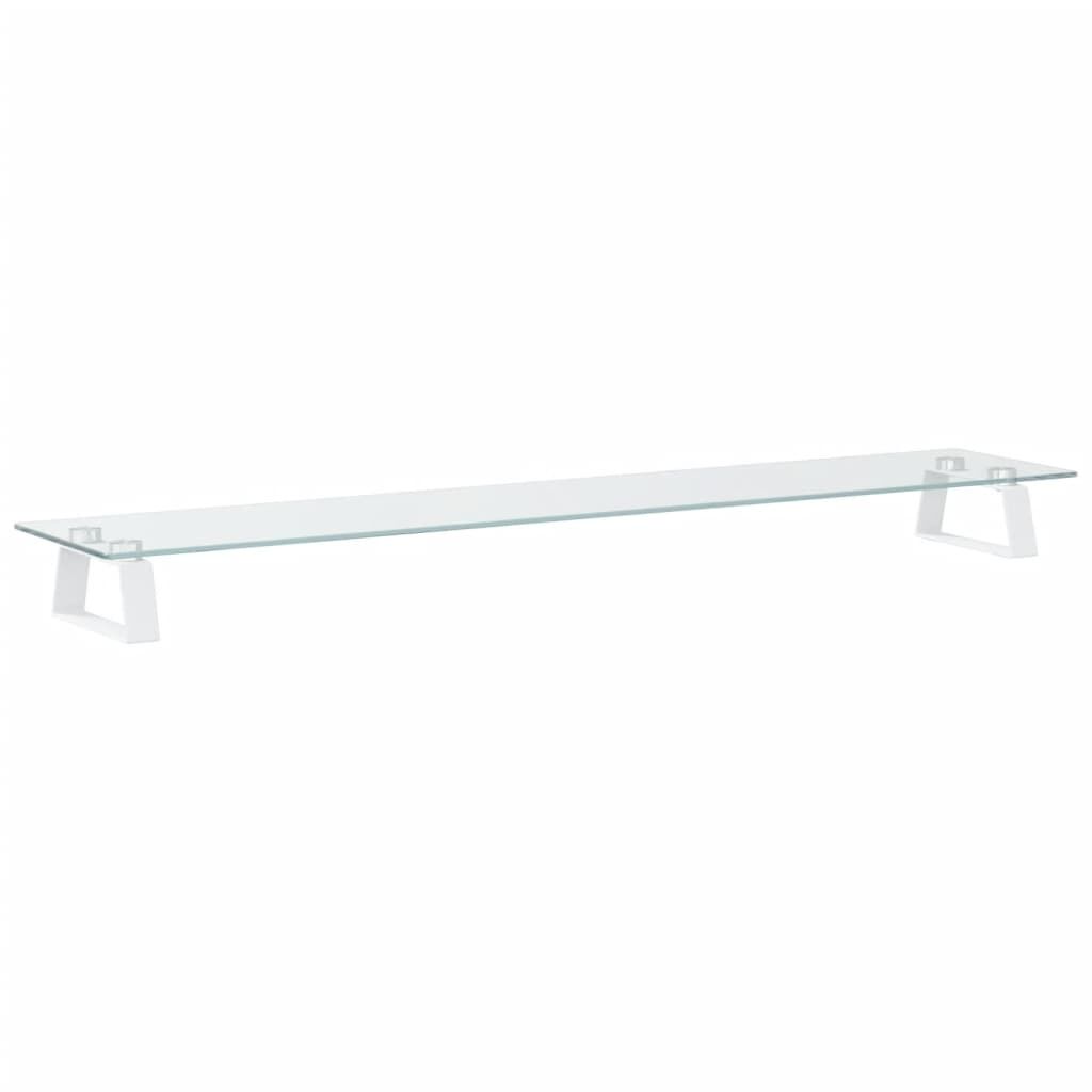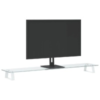 This practical monitor stand with a minimalist design will add a modern touch to your living space. Durable material: The computer stand is made of tempered glass and metal, making it exceedingly sturdy and stable.Ergonomic design: Raise your monitor up to eye level for a comfortable ergonomic viewing experience, relieving the strain on the neck, shoulder, and back.Additional storage: The storage space underneath this monitor riser can accommodate your keyboard, DVD player, gaming console, streaming device, receivers, media carriers, notebooks, pens, and similar items, which can better organise the desk to increase your efficiency.Rounded corner design: The smooth rounded corners allow you not to worry about being hurt by the screen stand during use.