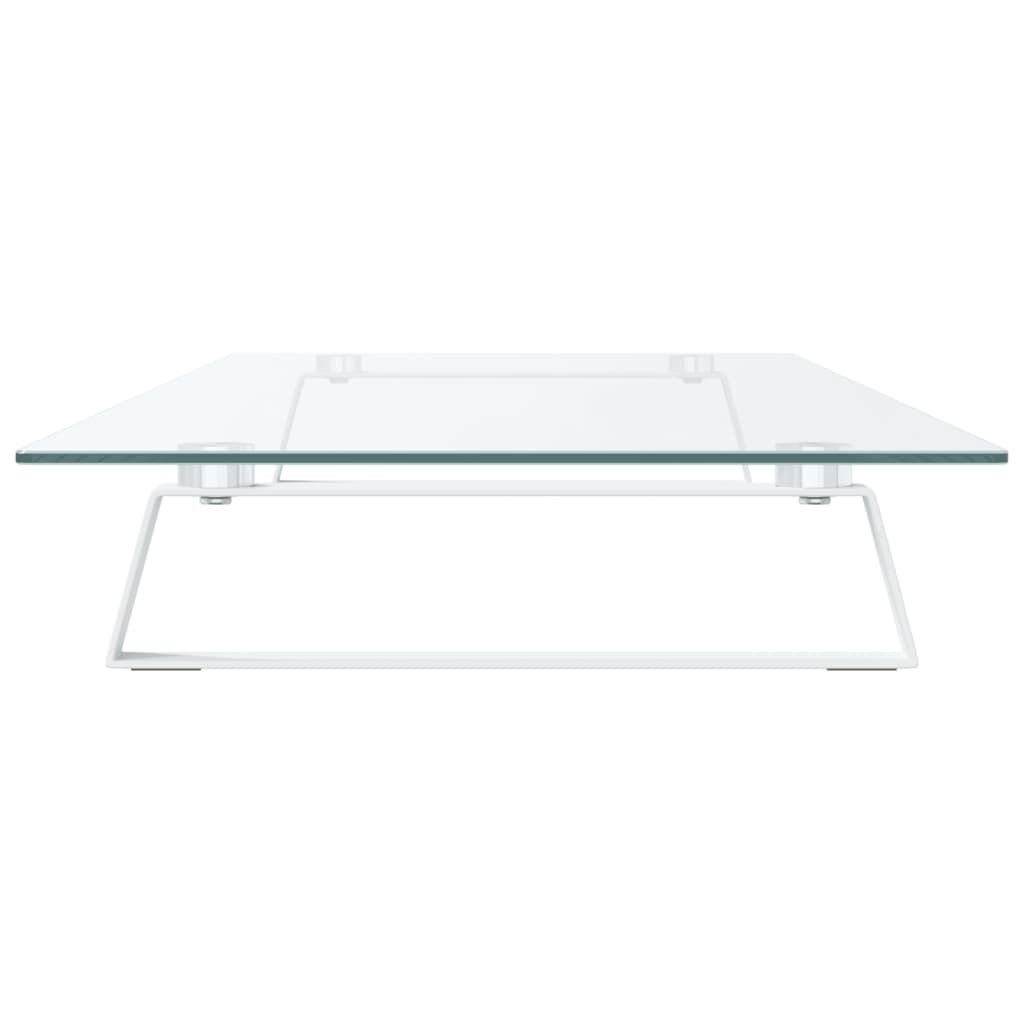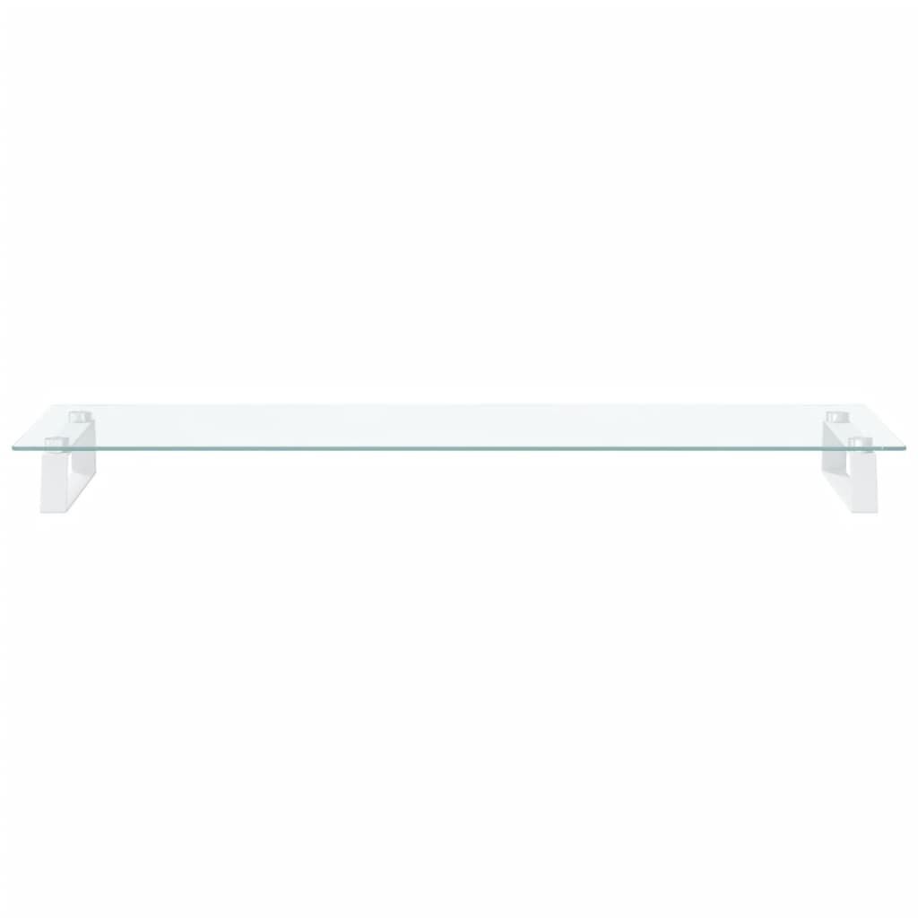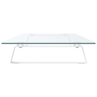 This practical monitor stand with a minimalist design will add a modern touch to your living space. Durable material: The computer stand is made of tempered glass and metal, making it exceedingly sturdy and stable.Ergonomic design: Raise your monitor up to eye level for a comfortable ergonomic viewing experience, relieving the strain on the neck, shoulder, and back.Additional storage: The storage space underneath this monitor riser can accommodate your keyboard, DVD player, gaming console, streaming device, receivers, media carriers, notebooks, pens, and similar items, which can better organise the desk to increase your efficiency.Rounded corner design: The smooth rounded corners allow you not to worry about being hurt by the screen stand during use.
