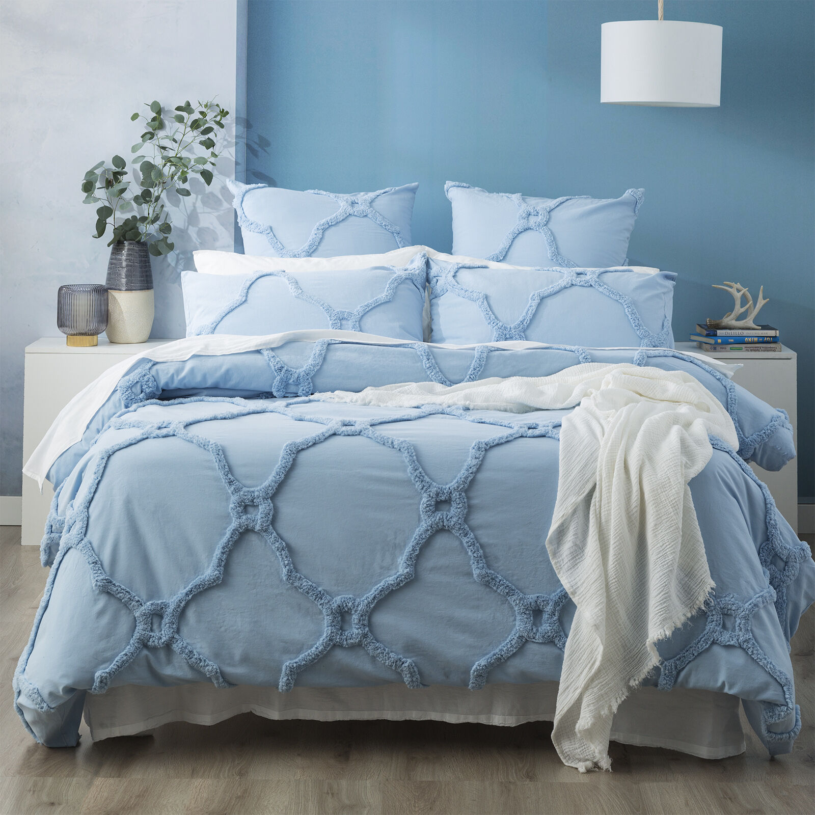 Moroccan 100% Cotton Chenille Vintage Washed Tufted Sky Quilt Cover Set by Renee Taylor King