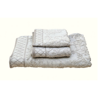 Jacquard weaving gives pattern to both sides of these towels with a Moroccan motif. Woven of organic cotton, theyre extremely absorbent and plush.