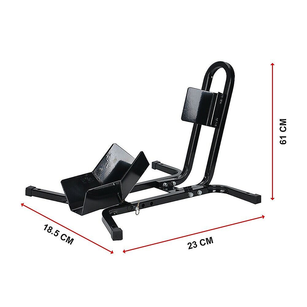 Specially manufactured by Randy Travis Machinery, this is one of the best front wheel support chocks on the market and is designed for large wheel sizes. The stand is made from the best quality iron available - for durability and support.. The front-wheel chock support is a reliable, strong and durable frame that is well suited for wheel frames ranging from 17 - 21 inches. It is a quality product with premium finish.