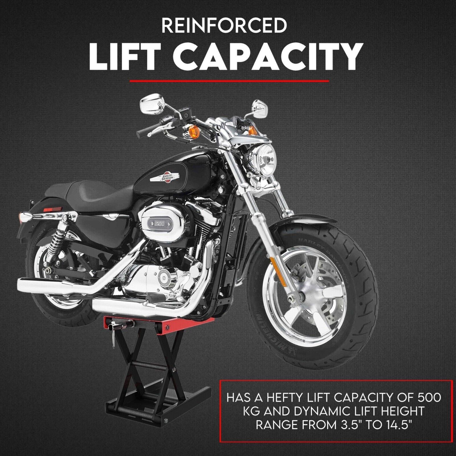 NOW $96.26The Fiernero Motorcycle Scissor Lift has a hefty lift capacity of 500 KG and dynamic lift height range from 3.5" to 14.5", this motorcycle center jack can be used to lift street bikes, cruiser bikes, and adventure touring motorcycles. It will not fit snowmobiles, ATVs, UTVs, or dirt bikes.