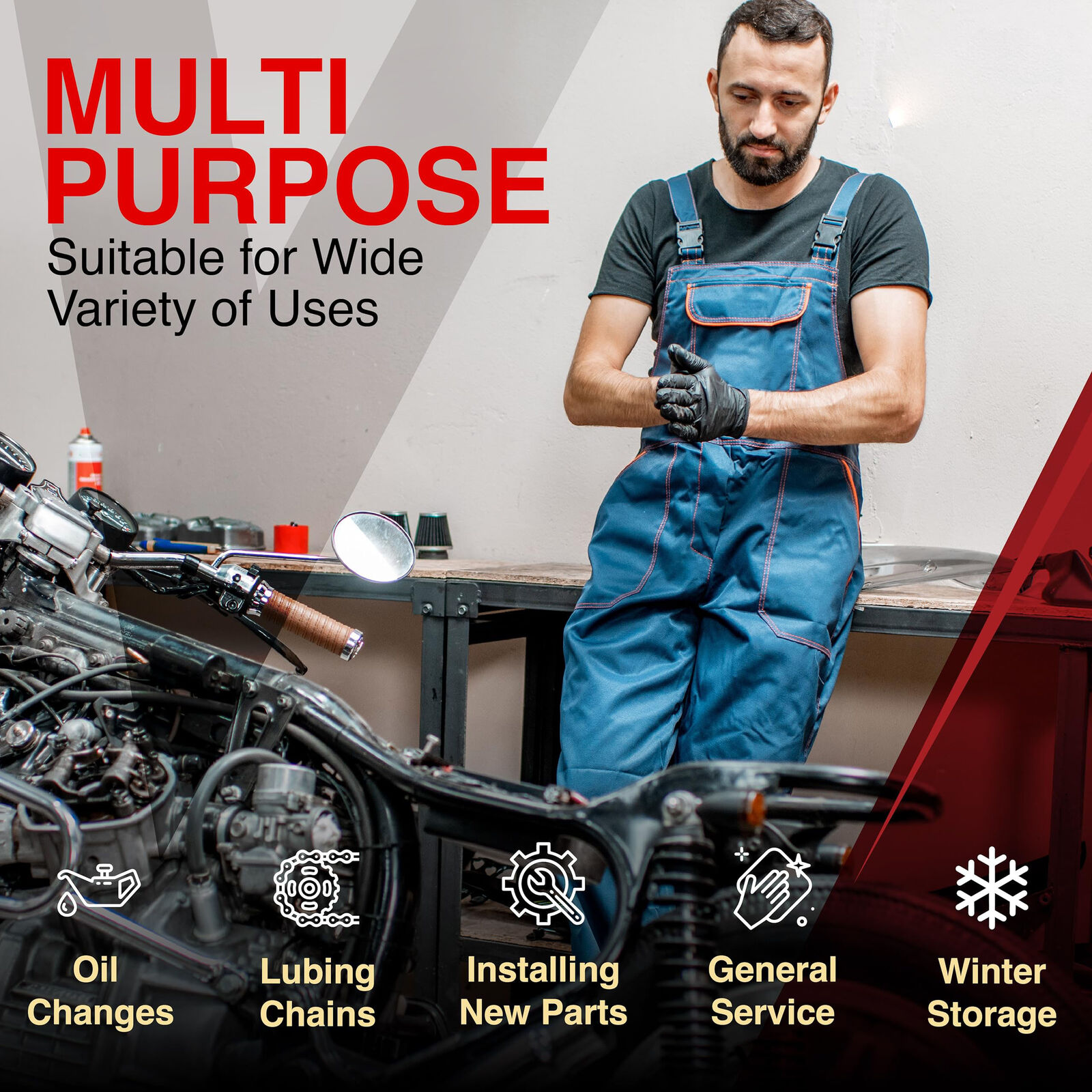 Our motorcycle jack lift stand is perfect for various at-home repairs and maintenance tasks, including oil changes, chain cleaning and lubrication, bike washing, part installations, wheel maintenance, and long-term storage to prevent flat spots on tires. This motorcycle stand for maintenance is compatible with most popular brands like Yamaha, Kawasaki, Honda, and Suzuki. This stand will replace your wheel chocks for motorcycles.