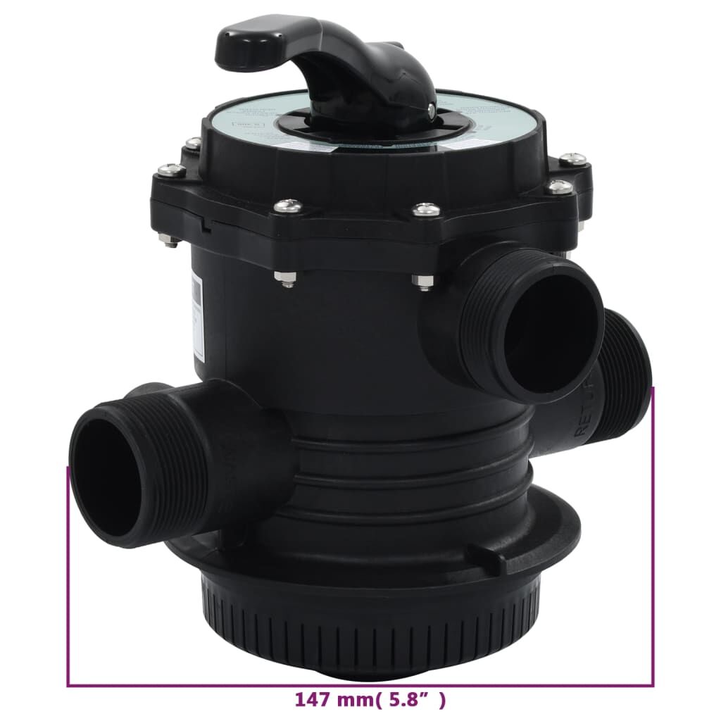 Made from ABS, the top mount multiport valve has 1.5 inch (38 mm) fitting connectors, and will work smoothly with your pool sand filter. Our pool filter valve features an easy-to-use lever action handle, which allows you to choose among 6 valve/filter functions: winter, recirculate, rinse, filter, waste and backwash. Equipped with an integral sight glass, you can see when the backwashing cycle is completed. Combined with pool filter, this multiport valve will keep the water in your swimming pool clean and sparkling. Please note the O-ring and fitting are not included in the delivery.