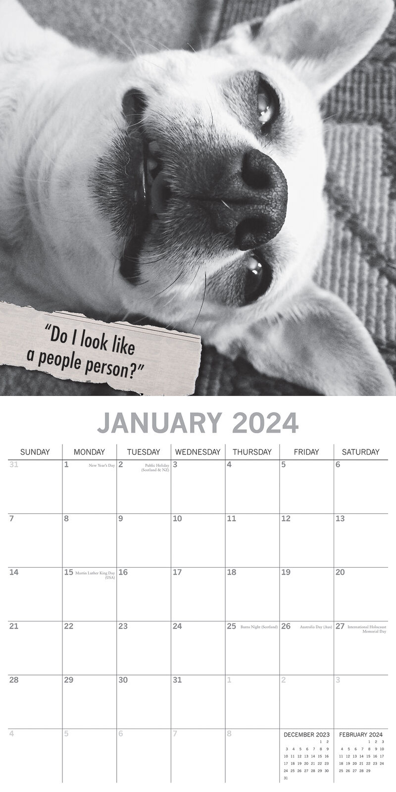 A year of adorable animals and wry humor. Brand New Calendar with Beautifully design, Sealed in Original Packaging, each calendar includes a large grid running from Sunday to Saturday. Publisher: The Gifted Stationery Co. Dimensions: 30cm (w) x 30cm (h) closed; 30cm (w) x 60cm (h) opened Time Span: 16 months (January to December 2024 monthly, September to December 2023 on-a-page) 2024 Square Wall Calendar featuring beautiful colour photographed images for every month of the year. Like most Wall calendars, this one comes with: