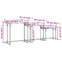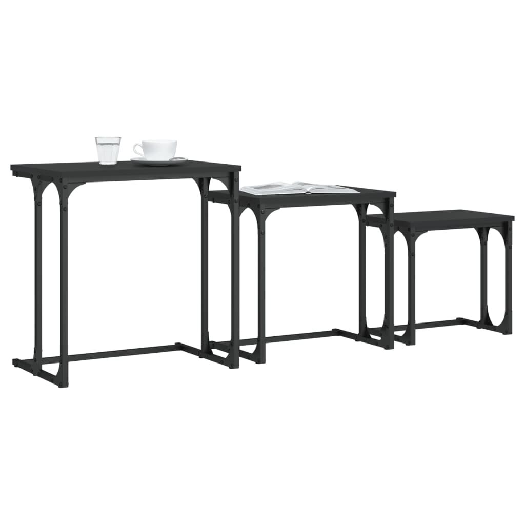 These 3 nesting coffee tables are the perfect alternative for small flats or any area with limited space. Its industrial design makes this coffee table set a chic addition to your living room, bedroom or office. Durable material: The engineered wood is of exceptional quality with smooth surface and also features strength, stability and resistance to moisture. Made of engineered wood, these nesting tables are easy to clean.Nesting design: The nesting coffee table set has different sizes to meet your different requirements. The smaller tables can nest inside the larger coffee table if you need more room. And you can arrange them separately for maximum tabletop space.Sturdy top: The sturdy tabletop of the nesting stand is ideal for placing your drinks or any other necessities you need close at hand.Versatile function: The nesting side tables are versatile! Any one of them can be used as a nightstand in the bedroom, a side table or a couch table in the living room and office.Metal frame: The metal frame adds an industrial style to your interior while ensuring durability and stability.