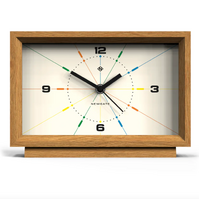 Newgate Hollywood Hills Mantel Clock A contemporary wooden mantel clock crafted from solid light oak. The graphic modernist dial features screen printed multicolour hour markers measured by metal conductor's baton hands.