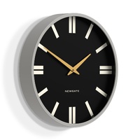 $175.77Newgate Universal Wall Clock Plaza Dial Grey A large grey wall clock with a bold black marker dial, contrasting gold hands and a deep straight-cut metal case.