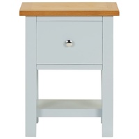 Our two-tone wooden nightstand will give your bedroom decor an elegant touch with its timeless design. The nightstand has a solid oak top, which adds to its sturdiness and durability. The oak has beautiful wood grains that exude a natural charm. The frame is made of solid pinewood with a white finish and boasts a contemporary style. Thanks to its compact design, this nightstand doesn't take up much space but is very practical. It will be perfect for keeping and displaying your bedtime essentials, and will help keep your room tidy. It can also be used as side table, end table, coffee table, or a telephone or plant stand. Note: the item is delivered fully assembled.