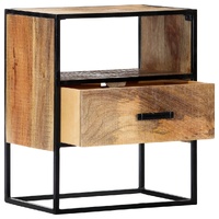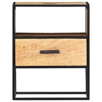 Equal parts minimalist and elegant, this wooden nightstand gives a nod to a vintage charm and industrial style with its solid mango wood and powder-coated steel legs. Made of solid rough mango wood and powder-coated steel legs, the bedside cabinet is exceedingly stable and durable. Mango wood is a dense and robust hardwood which has beautiful brown or golden streaks and contours on its surface. This telephone cabinet with 1 compartment and 1 drawer provides ample space for keeping your magazines, books, as well as various other small items within reach. Important note: The solid mango wood shows natural grains, making each of the nightstand unique and slightly different from the next. The delivery is random, ensuring the exclusivity and individuality of your product.