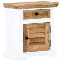 Introduce an air of elegant charm to your interior with our simple yet practical nightstand! Made of solid rough mango wood, the side cabinet is exceedingly stable and durable. Mango wood is a dense and robust hardwood which has beautiful brown or golden streaks and contours on its surface. This wooden sideboard with 1 drawer and 1 door provides ample space for keeping your magazines, books, decorations, as well as various other small items within reach. Additionally, the wooden frame design adds to an attractive look. Important note: The rough mango wood shows natural grains, making each of the nightstand unique and slightly different from the next. The delivery is random, ensuring the exclusivity and individuality of your product.