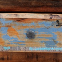 This antique-style wooden bedside cabinet, coming with 2 drawers, offers you certain storage space and helps you to maintain your items in great order. You can also put a desk lamp, toiletries or some decorations on the sturdy top surface. This bedside cabinet is made from reclaimed wood, which means that every piece of furniture is unique and slightly different from each other. The furniture made from reclaimed wood has characteristics of different woods like teakwood, acacia, mango wood, saal wood etc. Reclaimed wood is solid, stable, durable, and beautiful. The nail holes or clear-faced grains bring their history with them and invite another generation to permeate them with their own. Keeping this piece of furniture at home will show your concept of resource conservation, environment protection and sustainable development. Pure handmade craftsmanship adds the vintage spectacular style to the cabinet and feasts you with exotic flavour. Every process of recombining, polishing, painting and waxing is elaborately prepared. The antique bedside cabinet will surely be a perfect addition to your home! Important note: Colours vary from piece to piece, making each of our cabinet unique. The delivery is random, ensuring the exclusivity and individuality of your product.