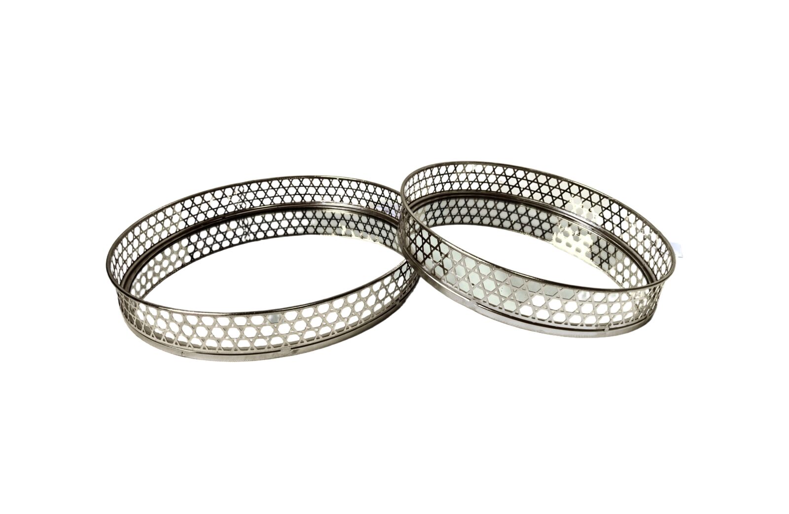 The Nina Round Tray Set features a sleek, polished finish with a mirror base and clean lines that complement modern d�cor. Available in two sizes, these trays offer versatility and style, making them an ideal addition to any room.