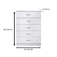 Product Dimensions of 5-Drawer Chest Storage: 70 cm (L) x 40 cm (W) x 90 cm (H)
