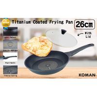 KOMAN Titanium Coating Frying Pan 26cm Non-Stick + Glass Lid