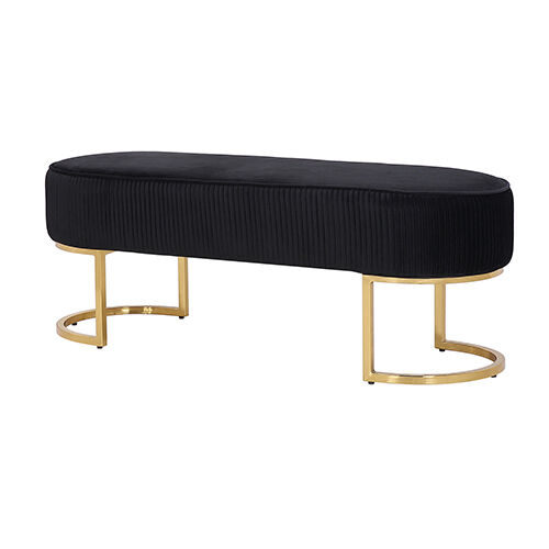 Noori Bench chair is fully upholstered and has soft padding in it. There is linear pattern design on the upholstery. Its shiny golden feet brings a stylish vibe in the surrounding. Consider placing it in your living room with the sofas or just place it in any corner of the house.